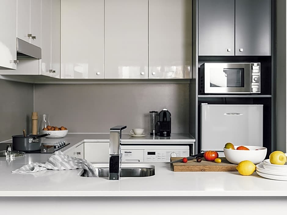 This air-conditioned suite is located on level 10 to 15. It has a balcony, tea/coffee making facilities and dining and living area with a flat-screen TV with cable channels. There is a fully equipped kitchen and laundry facilities.